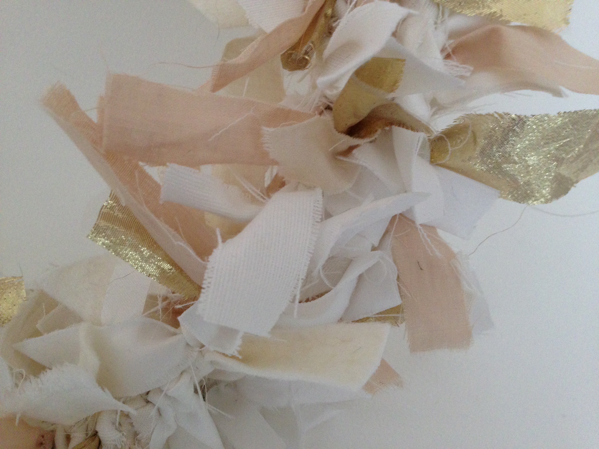 Detail of natural, white and gold fabric wreath